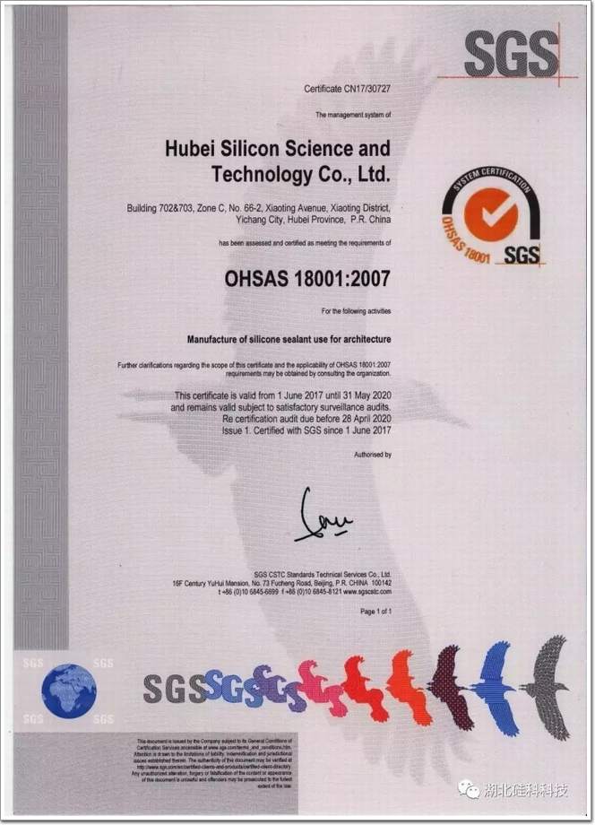 湖北硅科獲得OHSAS 18001管理體系認證