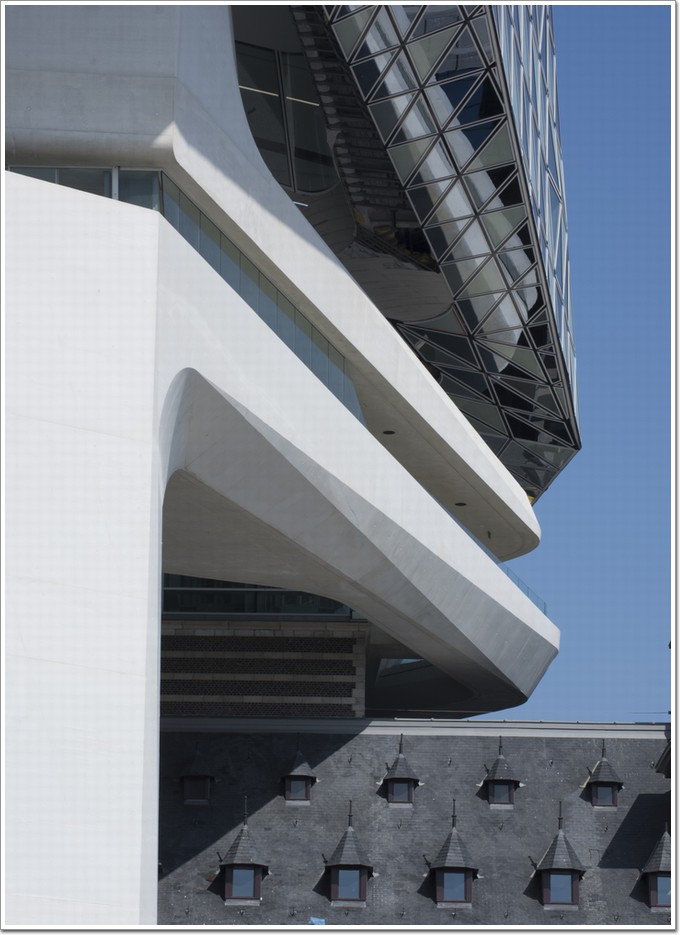 在建筑行業,廢物改造是一件比新建大樓還要繁復的工作,設計的局限、舊有空間的利用都是一件考驗設計者能力的環節,但有些設計大師卻偏愛在這樣的設計中尋找“快感”,扎哈·哈迪德事務所就改造了這么一個“神奇”的建筑——安特衛普港口集團大樓。