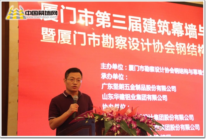 發(fā)表題為《國內(nèi)門窗幕墻的發(fā)展現(xiàn)狀及門窗幕墻行業(yè)管理導(dǎo)向》的演講