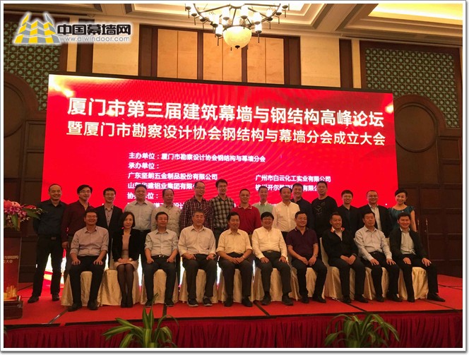 2017年11月16,由廈門市勘察設(shè)計(jì)協(xié)會(huì)鋼結(jié)構(gòu)與幕墻分會(huì)主辦,廣東堅(jiān)朗五金制品股份有限公司、廣州市白云化工實(shí)業(yè)有限公司、 山東華建鋁業(yè)集團(tuán)有限公司、 杭州開爾新材料股份有限公司承辦,廈門合立道工程設(shè)計(jì)集團(tuán)股份有限公司、廈門市建筑科學(xué)研究院集團(tuán)股份有限公司、廈門市建設(shè)工程施工圖審查所、銳建工程咨詢有限公司協(xié)辦的廈門市第三屆建筑幕墻與鋼結(jié)構(gòu)高峰論壇暨廈門市勘察設(shè)計(jì)協(xié)會(huì)鋼結(jié)構(gòu)與幕墻分會(huì)成立大會(huì),在廈門帝元維多利亞大酒店隆重舉辦。中國幕墻網(wǎng)ALwindoor.com作為大會(huì)支持媒體,全程見證本次高峰論壇的盛況,并為廣大門窗(詞條“門窗”由行業(yè)大百科提供)幕墻行業(yè)讀者帶來廈門市“鋼結(jié)構(gòu)與幕墻分會(huì)成立大會(huì)”現(xiàn)場的第一手資料!