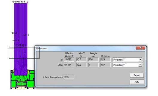 為了避免Uframe與Uf的混淆,建議:新建一個的u值標簽,比如all,然后分配給室內所有的表面。這樣得出Uall*ball就是Lf2d值。然后計算絕緣板中心部分的Up值,量取框的可視面高度bf和絕緣板的可視面寬度bp,代入151的公式7.1.2-2即可得出Uf。