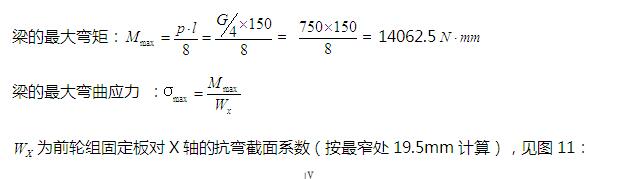 圖8為輪子受力分析示意圖,兩組輪組,四個輪子承受300kg質量的重力。