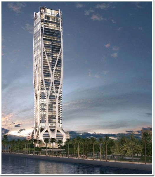 “邁阿密一千博物館”是扎哈的遺作,這名字咋一聽還以為真的是一座博物館,實際上它只是一座名為“一千博物館”的住宅項目,位于邁阿密市中心的比斯坎灣大道,是哈迪德在美國設計的首個住宅項目。大樓共有62層,總高度達215米,項目于2014年12月開建,預計于2018年交付使用。