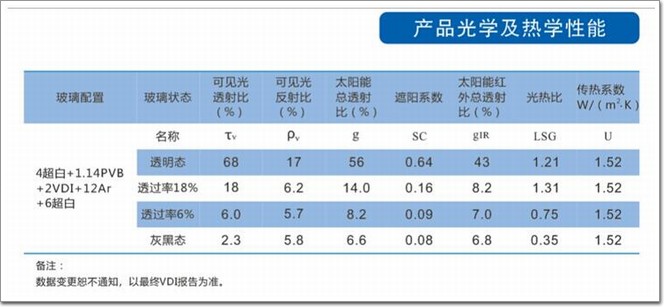 1. 連續可調的可見、紅外光透過率與遮陽系數,且具有較寬的變化范圍。
