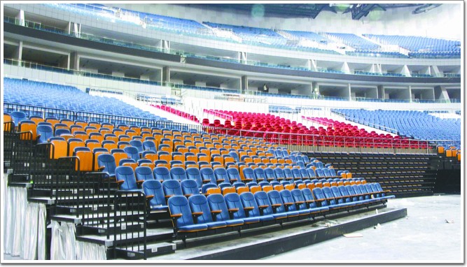 至于演藝中心內部,那更是高大上,最炫的是,偌大的空間居然沒有一根柱子,40多米的高度,完全無視覺死角。設計時,采取了大跨度的鋼結構,天花板的主桁架有1000噸,用了一周的時間一次性整體提升到屋頂,這么重的主桁架整體提升,全國罕有。
