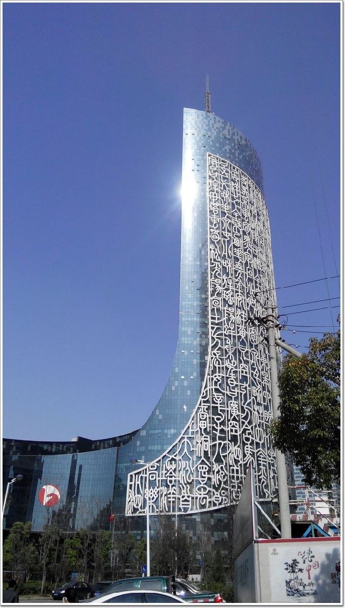 建筑特色:安徽廣播電視新中心占地273畝,位于合肥政務文化新區懷寧路與祁門路交口,整座大廈的設計利用其優美的古文與現代科技、現代建筑的有機結合,碰撞出不一樣的火花,造型極為特別,整座大樓外立面被“篆書”包圍,遠遠望去,別有一番特色,其字體蒼勁有力,氣勢不凡。整體設計在眾多高端時尚的大樓中顯得特立獨行,其別具一格的設計極大地營造出濃厚的中國歷史文化氛圍。篆字幕墻設計構思來源于中國古代紙的發明和書法文化,通過在幕墻外立外設計篆書字體,雙層隔音玻璃外再披上“鏤空”外衣,這在很大程度上起到遮陽的作用,將節能與文化氣質完美融合。