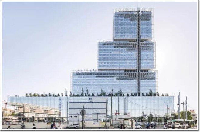 這個建筑的四個體量中,第一個體量長而低,與巴黎豪斯曼建筑的比例相一致。后面的三個體量每個都大約包含十層樓。這種分層結構會產生大型的屋頂露臺——總共大約有一公頃的面積,并計劃在這些露臺上面進行園林美化,種植大約500棵樹,這會讓建筑變得更加的柔和,并創造出了舒適的空間用于人們在此思考問題和討論事情,同時與能起到“植物幕墻”的作用,為建筑帶來良好的遮陽(詞條“遮陽”由行業大百科提供)效果。