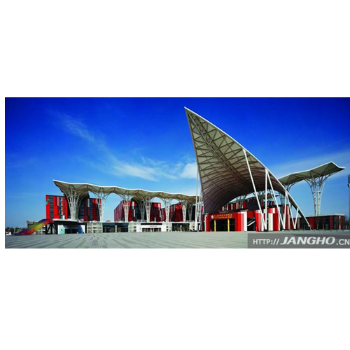 該項(xiàng)目幕墻工程高達(dá)15萬平米,幕墻造價(jià)1.5億,由蘇州金螳螂幕墻有限公司負(fù)責(zé)施工設(shè)計(jì),幕墻類型繁多,包括隱框玻璃幕墻系統(tǒng)、層間橫向單元鋁板幕墻裝飾線條系統(tǒng)、側(cè)扭面明框玻璃幕墻系統(tǒng)、鋁板幕墻系統(tǒng)、密縫式鋁板、防雨通風(fēng)百葉系統(tǒng)鋁板。而幕墻形式主要為雨幕式異形鋁板幕墻。其中配套材料,型材由北京東亞鋁業(yè)有限公司提供,玻璃由南玻提供,建筑膠選擇了白云,慕墻五金選擇了堅(jiān)朗,而門窗五金則由興三星提供。