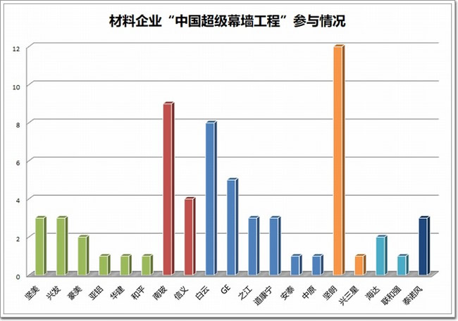 中國幕墻網原文報道:“建筑膠用得最多的企業為白云化工(8項工程)占比44.4%、GE緊隨其后(5項工程)占比27.7%、杭州之江(3項工程)占比16.6%、道康寧(3項工程)占比16.6%。”