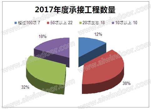 通過圖六,2017年度顧問公司承接工程數量總數與上一年度調查結果基本持平,這在隨后的圖七中也可以看出來,承接工程數量超過100的達到12%,超過50項的達到38%,行業內企業間的差距逐漸顯現,“合伙人”、“加盟店”的運營理念,幫助很多顧問咨詢公司快速鋪開全國的服務網絡,從而提升市場量級。