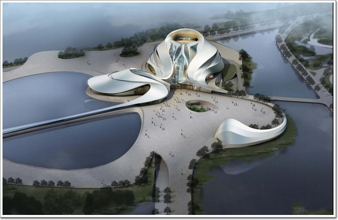 大劇院整體設計思路與MAD 為《星球大戰》導演喬治·盧卡斯設計的芝加哥盧卡斯敘事藝術博物館方案頗有幾分相似,后者的整體外型呈現出山巒起伏的樣子,白色的外立面自下延伸至附近的水面,往上則向天際延伸,在周圍高樓林立的塊狀天際線的包裹下,柔和的外部曲線給人流動的感覺,仿佛是高樓叢林中一座低矮的小山,將周圍的城市空間與環境融為一體。