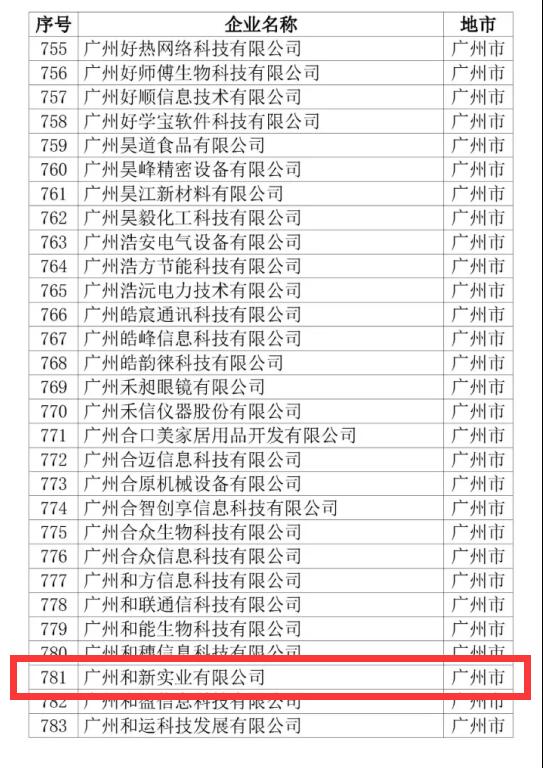 根據《高新技術企業認定管理辦法》(國科發火〔2016〕32號)和《高新技術企業認定管理工作指引》(國科發火〔2016〕195號)有關規定,公布了廣東省2017年第二批擬認定高新技術企業名單,廣州和新實業有限公司上榜!