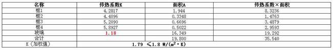 幕墻系統(tǒng)滿足熱工要求,此時(shí)幕墻系統(tǒng)的加權(quán)傳熱系數(shù)很接近限值。