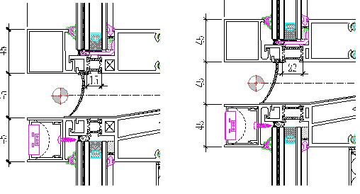 幕墻的整體傳熱系數(shù)必須是玻璃和鋁(詞條“鋁”由行業(yè)大百科提供)合金框的加權(quán)傳熱系數(shù),而有效提高幕墻鋁合金型材(詞條“鋁合金型材”由行業(yè)大百科提供)的保溫性能是節(jié)能設(shè)計(jì)的重要措施。本項(xiàng)目玻璃幕墻為橫明豎隱形式,鋁合金龍骨設(shè)計(jì)為隔熱型材,隔熱材料采用PA66GF25隔熱條。