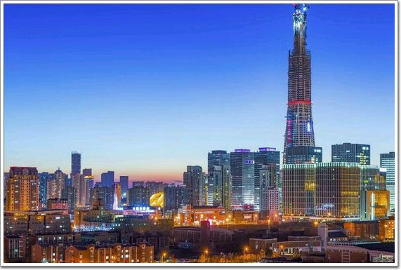日前,項目裙樓主體結(jié)構(gòu)已完成,進入初裝階段,主樓的玻璃幕墻覆蓋的范圍正逐漸擴大,預計今年10月,項目就將達到竣工條件。整個項目以530米的高度,位列全球第8,是中國長江以北的建筑高度之冠,總建筑面積39萬平方米,展現(xiàn)了天津濱海新區(qū)當代建筑技術(shù)和商業(yè)活力。