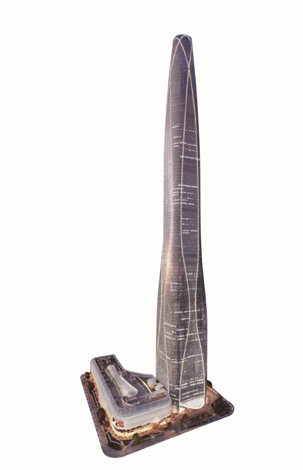 天津周大福金融中心位于天津泰達現(xiàn)代服務產(chǎn)業(yè)區(qū)(MSD)內(nèi),由一座530米高的主塔和裙樓組成,建筑面積39萬平方米,裙樓3萬平方米,是一座以甲級寫字樓為主、集五星級酒店及豪華公寓設施于一體的地標性建筑,她將代表天津成為一顆璀璨的“北方之鉆”。