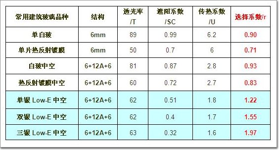 2、節能玻璃的性能比較:
