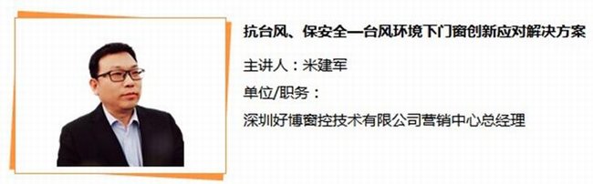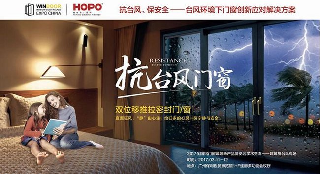 HOPO好博窗控營銷中心總經理米建軍先生,將以《抗臺風、保安全——臺風環境下門窗創新應對解決方案》為主題,攜新思想、新產品、新技術與您相約“第23屆全國鋁門窗幕墻新產品博覽會”,2017.3.11我們不見不散!
