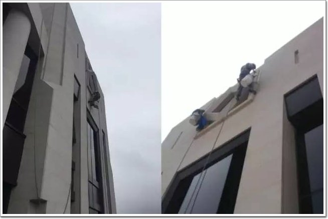 7.為保證幕墻不出現色差,對于石材的色差控制也是極其嚴格,在石材到場后先預排板篩色差,上墻后整體觀察,再將出現色差的石材進行標記、拆除、更換,直至石材墻面基色一致。
