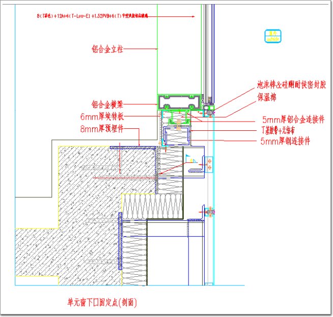 4.本工程窗系統打破了常規做法(未使用鋼副框連接系統),窗戶采用上下支點式固定方式,其中W15窗型為組合窗:是由5樘單元窗,1樘約6㎡單元窗、2樘帶開啟的單元窗、2樘轉角單元窗組合而成。其中W15-1窗戶尺寸約達到六平方米,這給后續的安裝工作帶來了一定的難度,后經多種試驗、實踐和對工具的改裝,及吊裝設備配合施工完成窗戶整體的安裝工作。