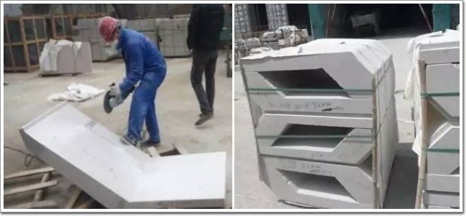 △ 現場對異型石材(詞條“異型石材”由行業大百科提供)的切割