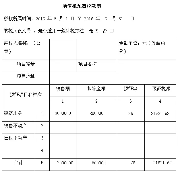 (一)適用一般計稅方法計稅的,應(yīng)預(yù)繳稅款=(全部價款和價外費用-支付的分包款) ÷(1+11%)×2%;
