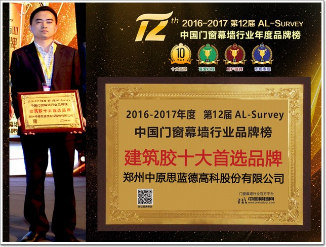 此外,在全國鋁門窗幕墻行業(yè)年會(huì)其間,還舉行了由中國建筑金屬結(jié)構(gòu)協(xié)會(huì)主辦,中國幕墻網(wǎng)ALwindoor.com承辦的“第十二屆AL-Survey2016-2017中國幕墻網(wǎng)年度大型讀者調(diào)查暨‘我最喜愛幕墻工程’評選活動(dòng)”的頒獎(jiǎng)儀式,該活動(dòng)自2005年創(chuàng)立以來,迄今已連續(xù)舉辦12屆,堅(jiān)持“沒有黑馬,實(shí)至名歸”的評選風(fēng)格,已成為廣大房地產(chǎn)開發(fā)商、設(shè)計(jì)院以及行業(yè)專家、顧問咨詢公司等讀者群體進(jìn)行品牌選擇和產(chǎn)品選購的重要參考依據(jù)。而每屆的“我最喜愛幕墻工程”評選,更是以其“新、奇、高、大”的入圍標(biāo)準(zhǔn),被喻為“魯班獎(jiǎng)”的前哨站,鄭州中原在本次評選中,以88032張選票并結(jié)合專家評審結(jié)果最終獲得建筑膠十大首選品牌,這是鄭州中原的榮譽(yù)也是中原回饋客戶信任的最好答卷。
