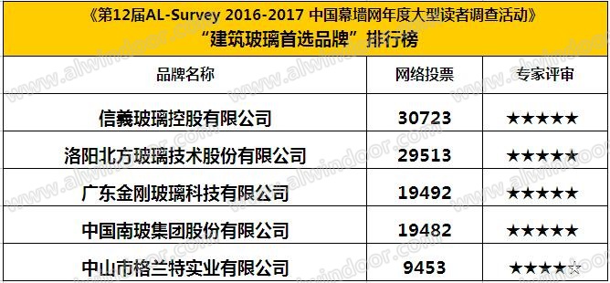 此外,在全國鋁門窗幕墻行業年會其間,還舉行了由中國建筑金屬結構協會主辦,中國幕墻網ALwindoor.com承辦的“第十二屆AL-Survey2016-2017中國幕墻網年度大型讀者調查暨‘我最喜愛幕墻工程’評選活動”的頒獎儀式,該活動自2005年創立以來,迄今已連續舉辦12屆,堅持“沒有黑馬,實至名歸”的評選風格,已成為廣大房地產開發商、設計院以及行業專家、顧問咨詢公司等讀者群體進行品牌選擇和產品選購的重要參考依據。而每屆的“我最喜愛幕墻工程”評選,更是以其“新、奇、高、大”的入圍標準,被喻為“魯班獎”的前哨站,金剛玻璃不負眾望以19492票獲得建筑玻璃類首選品牌大獎。