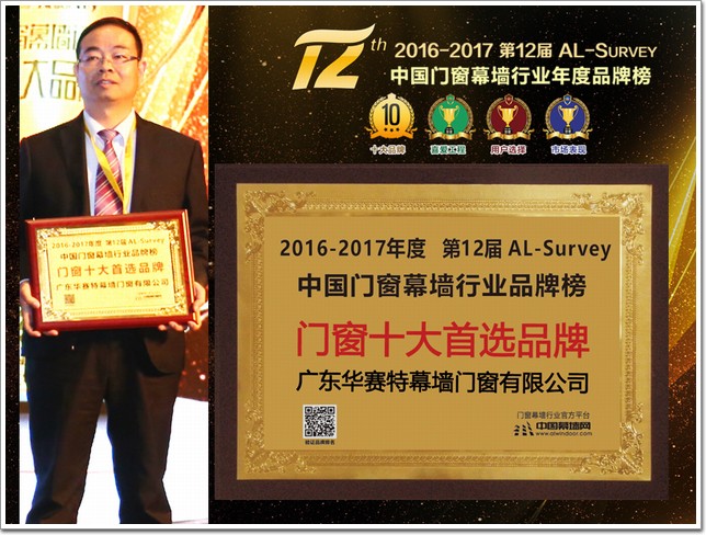 在全國(guó)鋁門窗幕墻行業(yè)年會(huì)其間,舉行了由中國(guó)建筑金屬結(jié)構(gòu)協(xié)會(huì)主辦,中國(guó)幕墻網(wǎng)ALwindoor.com承辦的“第十二屆AL-Survey2016-2017中國(guó)幕墻網(wǎng)年度大型讀者調(diào)查暨‘我最喜愛(ài)幕墻工程’評(píng)選活動(dòng)”的頒獎(jiǎng)儀式,該活動(dòng)自2005年創(chuàng)立以來(lái),迄今已連續(xù)舉辦12屆,堅(jiān)持“沒(méi)有黑馬,實(shí)至名歸”的評(píng)選風(fēng)格,已成為廣大房地產(chǎn)開(kāi)發(fā)商、設(shè)計(jì)院以及行業(yè)專家、顧問(wèn)咨詢公司等讀者群體進(jìn)行品牌選擇和產(chǎn)品選購(gòu)的重要參考依據(jù)。而每屆的“我最喜愛(ài)幕墻工程”評(píng)選,更是以其“新、奇、高、大”的入圍標(biāo)準(zhǔn),被喻為“魯班獎(jiǎng)”的前哨站,在此次行業(yè)最大的盛會(huì)中,華昌鋁業(yè)旗下偉昌鋁材榮獲2016-2017年度中國(guó)門窗幕墻行業(yè)年度品牌“建筑型材十大首選品牌”、華賽特系統(tǒng)門窗獲“門窗十大首選品牌”兩項(xiàng)大獎(jiǎng)。
