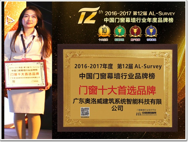 奧洛威榮獲“門窗十大首選品牌”