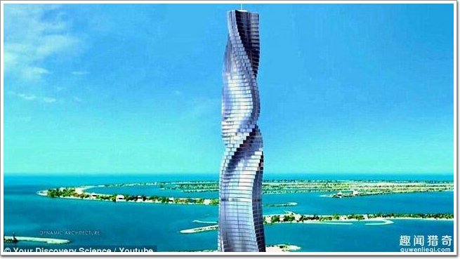 讓一座摩天大樓在空中旋轉“跳舞”,聽上去像是科幻小說。2009年6月24日意大利建筑師戴維·菲舍爾向世人宣布,他將在迪拜建成世界首個風力發電的旋轉摩天大樓,預計2010年世人就可以欣賞到這座大樓的翩翩“舞姿”。 在美國紐約舉行的一個新聞發布會上,“旋轉塔迪拜發展有限公司”透露了這一革命性的建筑設計和建造計劃。來自意大利的建筑師菲舍爾宣布將在迪拜建立“世界首個動態塔”,這棟高樓友420公尺、80層樓,每一層都能繞著建筑的實心中央柱旋轉,而且房客只要聲控就可以。這棟大樓的每一層也都會有水平的風車,樓頂有太陽能板,讓這整棟樓能自己發電自己用。
