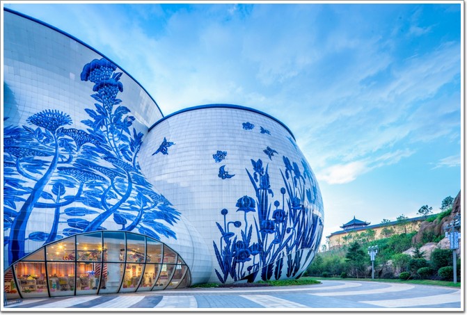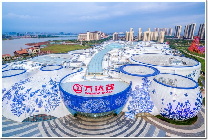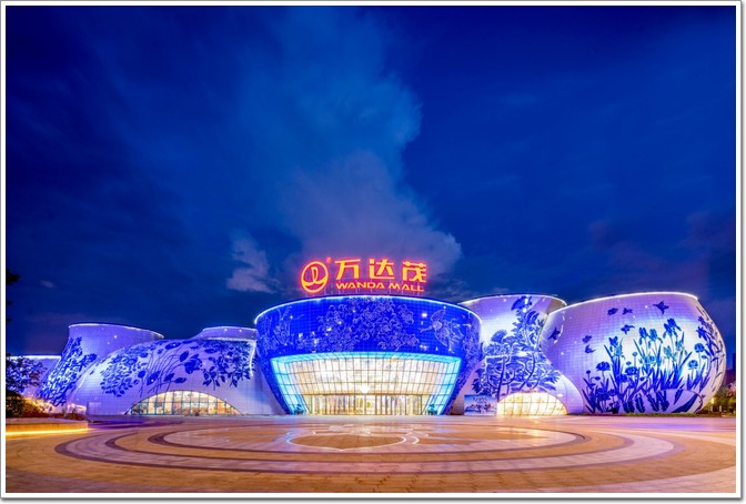 南昌萬(wàn)達(dá)茂是全球目前為止體積最大的以青花瓷為主題的商業(yè)建筑,其造型為26個(gè)瓷罐,既形態(tài)各異,整體上又渾然一體。外幕墻設(shè)計(jì)以青花瓷為主題,充分融入江西地方元素,完整地體現(xiàn)了江西贛瓷文化特色,淋漓盡致地展示出了中華瓷都的文化古韻與現(xiàn)代幕墻科技之美。