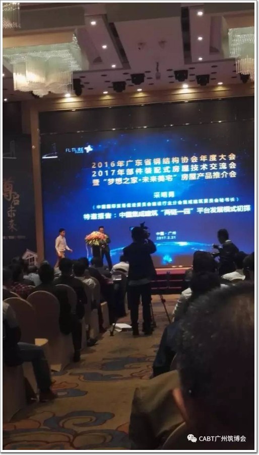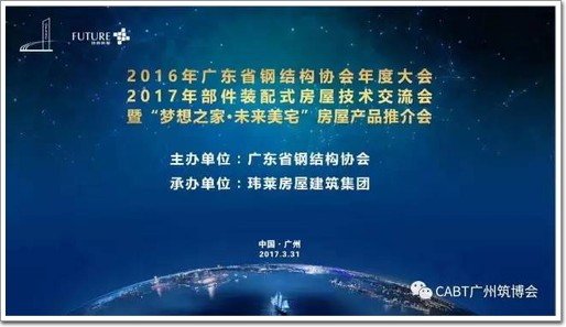 3月31日,2016年廣東省鋼結構協會年度大會暨2017年部件裝配式房屋技術交流會在廣州日航酒店舉行,會議同期舉辦了“夢想之家、未來美宅”房屋產品推介會,政府主管部門領導、行業專家、協會會員、新聞媒體、業內同行等250多名專業人士出席了會議。