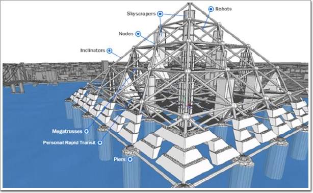清水巨型都市金字塔(建于日本東京灣,由Dante Bini和David Dimitric 設(shè)計(jì),2003)