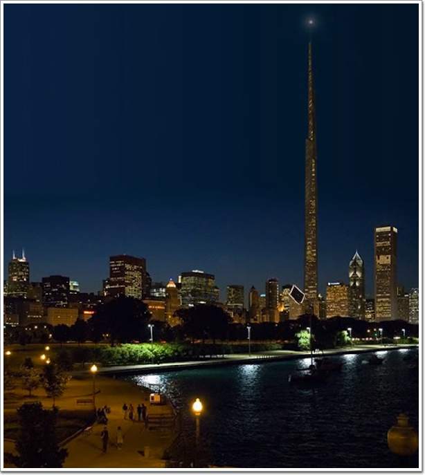 這建筑有528層樓和兩倍于(不算天線尖塔5280英尺/1610米)迪拜塔的高度。該塔的建筑師從1920年代開始構(gòu)思設(shè)計(jì),但直到1956年在他的書《A Testament》里才有所提及。