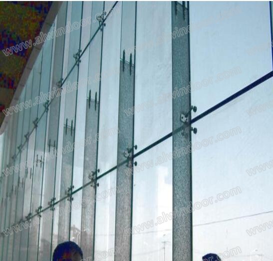 在玻璃幕墻的分類中,玻璃肋支承點支式玻離幕墻是點支式玻璃幕墻中的一大類。有整體玻璃肋支承的支承點支式玻離幕墻;有由多片玻璃通過連接板將其駁接成整體肋板支承的支承點支式玻離幕墻;有垂直地面安裝的也有與地面成一定夾角安裝的斜面玻璃幕墻;還有