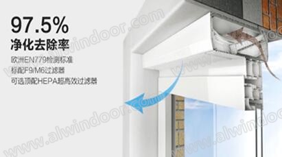 多功能門窗在歐洲以及世界其他地區都有很好的應用,在我國的應用也不是新的產品,但由于造價偏高而一直沒有得到較好的發展。多功能門窗一般是指將具有不同功能的產品組合到同一個門窗框架之內或同一個門窗洞口之內具有多種功能的門窗產品,如將遮陽百葉與門窗組合、通風器與門窗組合、保溫卷簾與門窗組合、防塵紗窗與門窗組合、通過調節不同使用狀態來改變門窗使用能的門窗等等。隨著居住建筑對舒適性和節能要求的提高,更多關注產品性能和質量的用戶將是這一產品的需求和擁有者。圖4為帶有高性能除塵功能通風器的門窗。