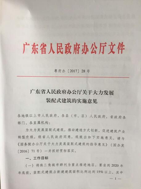 裝配式建筑已成國家戰略性發展重點,萬億級風口有待挖掘,2017年4月26日,廣東省人民政府辦公廳正式對外頒發《廣東省人民政府辦公廳關于大力發展裝配式建筑的實施意見》(以下簡稱《實施意見》),正式吹響了廣東大力發展裝配式建筑、推動建造方式創新,促進建筑產業轉型升級的號角。