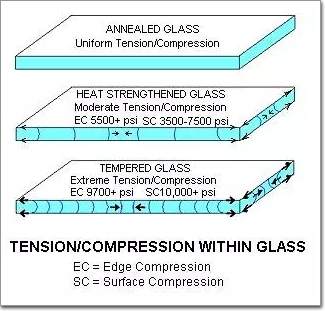 普通玻璃和熱強化玻璃及強化玻璃的性能對比圖