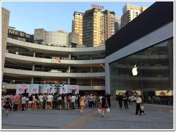 重慶目前三家Apple store直營店,解放碑這一家是玻璃門入口在地面,實體店在地下的,所以應該曬不到。