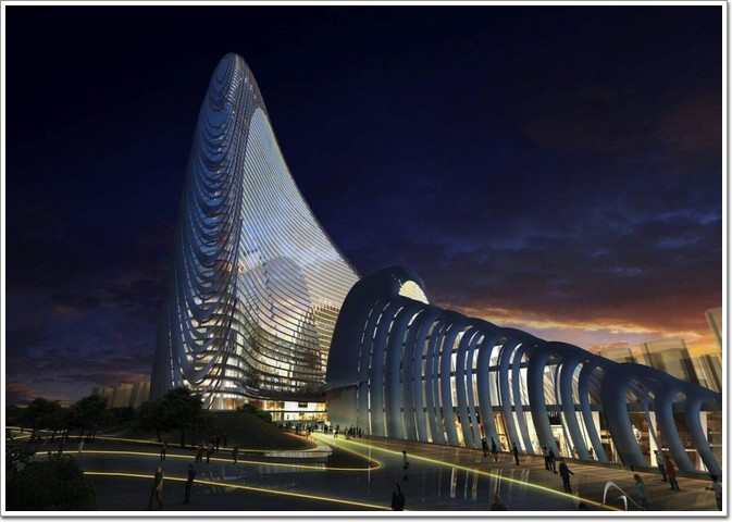 該項目位于北京市朝陽區(qū)望京商業(yè)核心地段,是SOHO中國公司開發(fā),由國際知名的建筑大師Zhahaid擔綱設計的。整體造型是由三座類似層層迭起的山峰狀的復雜空間幾何體的塔樓構成。