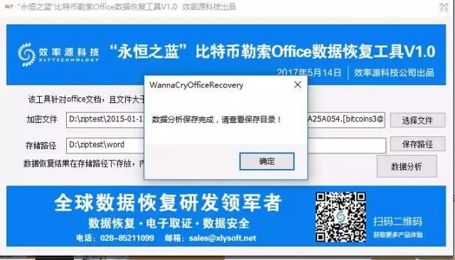 效率源 “永恒之藍”比特幣勒索Office數據恢復工具V1.0下載地址: