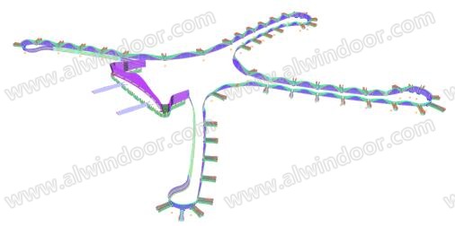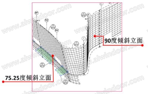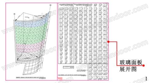 由此便可知,轉角位置的所有單元體板塊的是形狀尺寸都不相同,不僅每層半徑均不一致,每塊玻璃 (詞條“玻璃”由行業大百科提供) 單元體頂部與底部半徑也不一致,由于角度變換,橫梁 (詞條“橫梁”由行業大百科提供) 也并非常規的標準狀態。
