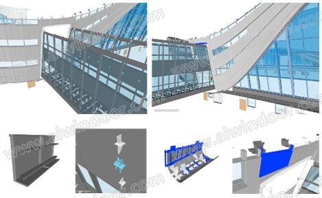 由于單元體板塊的尺寸和結構不同,形成了多種單元體類型,因此對 Revit 的族文件的可適應性提出了很高的要求。經過我司 BIM 工程師的仔細斟酌和測試,創建了多個多參數共同控制的高適應性的族文件,可以同時適應于不同位置的單元體結構。并且添加足夠詳細的節點細節,已達到模型的精細程度要求,如圖10.11.12.。