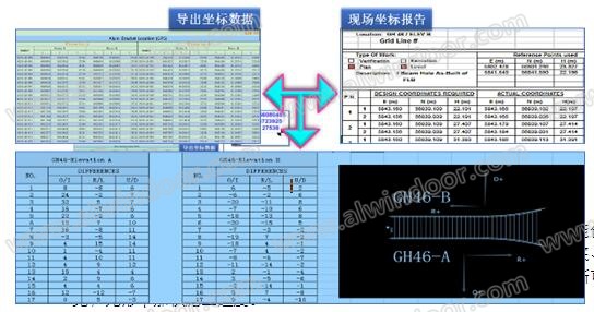對比理論坐標數據和現場實際測量數據表便可以得到偏差值報告,以此確認安裝的調節方案,以保證幕墻始終安裝在精確的理論位置,如圖15。