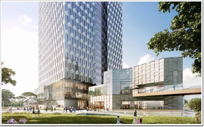 該項(xiàng)目主塔樓外立面設(shè)計(jì)為全隱框玻璃幕墻,并以獨(dú)特的造型營(yíng)造出逼真的3D立體效果。其次,項(xiàng)目將零售商業(yè)公共空間的設(shè)計(jì)也發(fā)揮得淋漓盡致,加上靠近主入口區(qū)的塔樓,令建筑物在銀城路及即墨路上更為突顯。該項(xiàng)目也將同時(shí)坐享俯瞰著名的黃浦江以及浦西城市的獨(dú)特景觀。