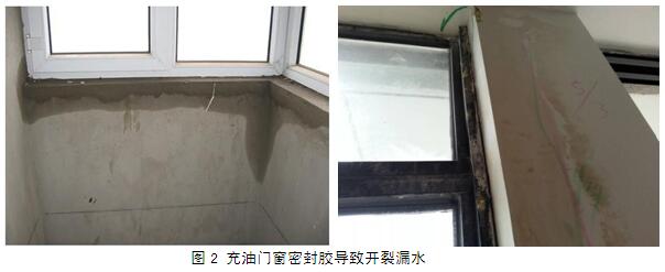 門窗密封膠 主要用于門窗的接縫密封,保證門窗的氣密性、水密性。充油硅酮密封膠應用到門窗密封,往往不到一至兩年就出現密封失效,導致門窗出現漏水(見圖2),能耗上升,嚴重影響到正常使用。