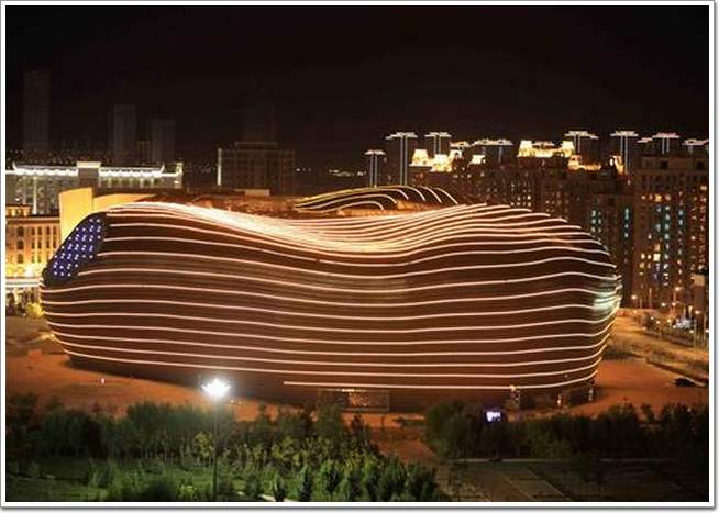 鄂爾多斯博物館,形如流動的沙丘,造型奇特,老外稱這樣的設計非常現(xiàn)代化。鄂爾多斯博物館位于鄂爾多斯市康巴什新區(qū),于2006年開工建設,占地面積27760平方米,建筑面積41220平方米,為地下一層,地上四層,局部八層的綜合性博物館,配套有7個總計8500平方米的專業(yè)展廳,以及一個同時能容納260人的大型學術報告廳,70余間各類辦公室、會議室,2個貴賓接待室。同時,還配備有餐廳、地下停車場等多個輔助設施。