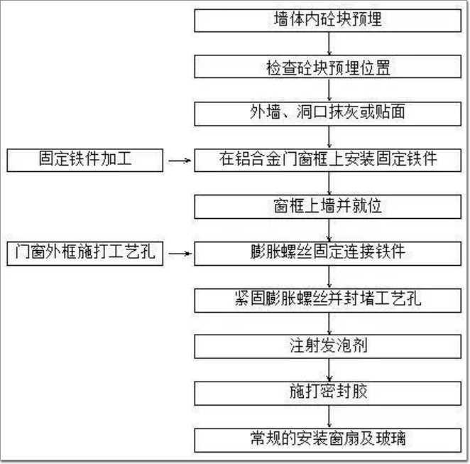 門窗后裝法施工是在砌筑墻體時按照門窗的尺寸(是門窗的洞口尺寸,不是門窗的加工尺寸)預留出門窗的洞口,等內外墻的抹灰基本完成后,再安裝門窗框。