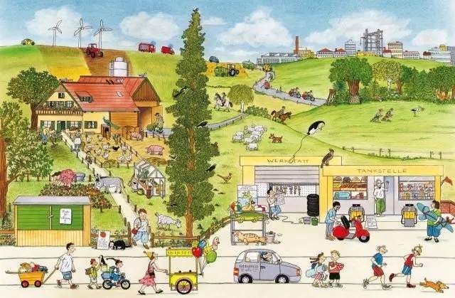 關于小鎮生活日常的無字書,插畫異常精細,龐大的細節等待孩子去發現。文字書固然精彩,但純粹的圖畫書更能讓孩子專注于畫面本身從而提升自己的觀察力,這也是孩子并不適宜過早學習文字的道理。